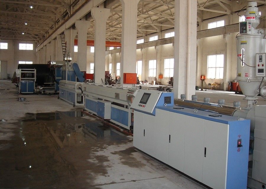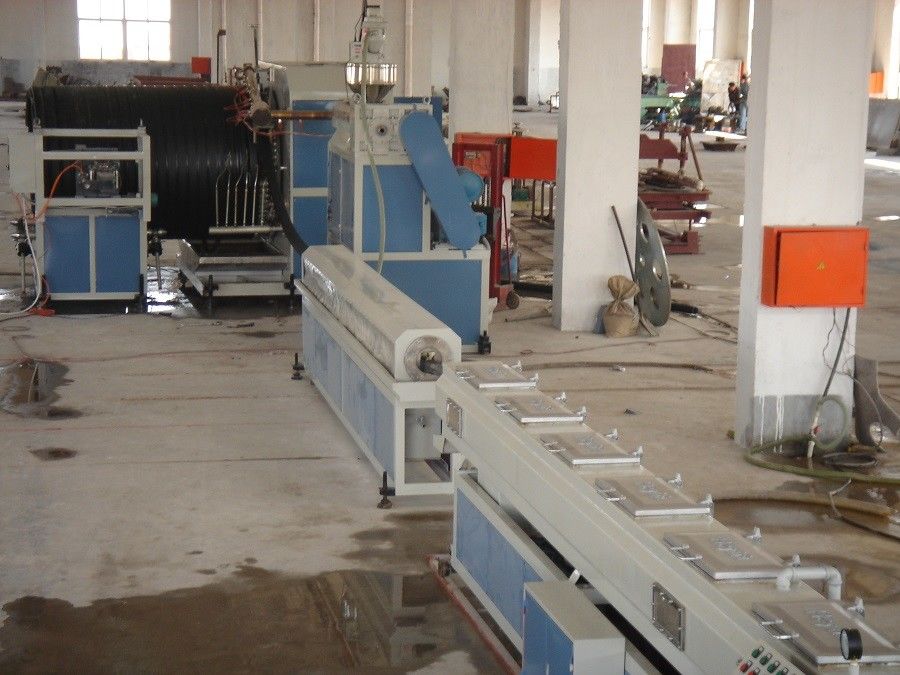 Esta linha da extrusão da tubulação inclui a extrusora, morre cabeça, moldes, espiral que forma a máquina, formando moldes, extrusora da colagem, sistema de calibragem do vácuo, tanque de pulverização da água, máquina de corte, virando o suporte e a linha inteira sistema de controlo.