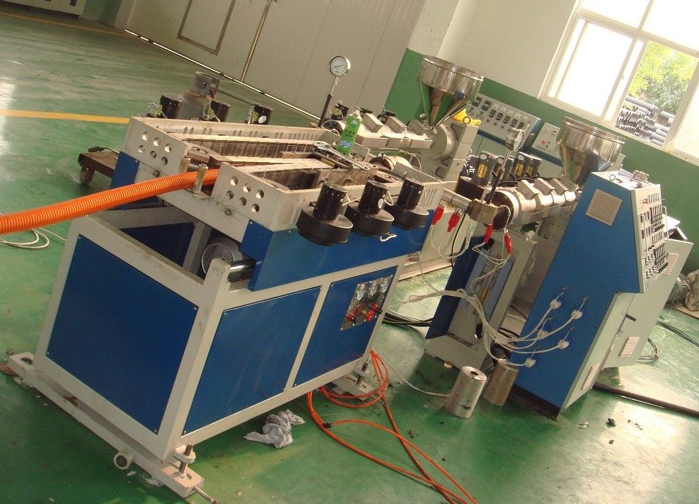 Extrusora: Extrusora de único parafuso da alta velocidade e da eficiência, tambor sulcado, equipado com o redutor mais baixo do fã do ruído, o de alta velocidade e o duro da engrenagem. Pode fazer o interno e as camadas exteriores produzem a extrusão diferente da eficiência elevada do material e da garantia.