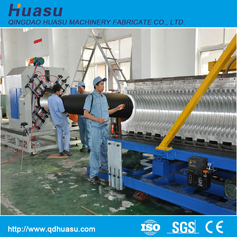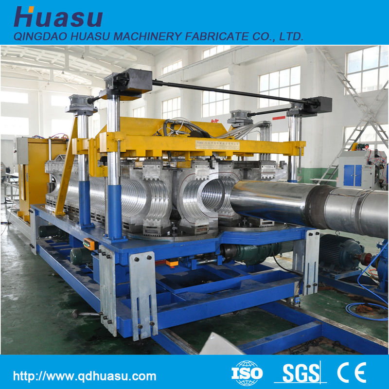 Extrusora de único parafuso: A extrusora de único parafuso da alta velocidade e da eficiência é projetada especialmente para expulsa material do HDPE, do LDPE, e dos PP, tambor sulcado, equipado com o fã mais baixo do ruído, a alta velocidade e o redutor duro da engrenagem. As camadas internas e exteriores da tubulação ondulada são independentemente material da alimentação por duas extrusora plásticas. Pode fazer o interno e as camadas exteriores produzem o material diferente e a eficiência elevada da garantia expulsa.