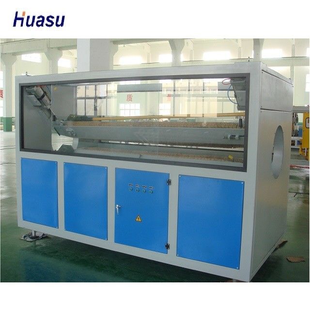 → de alimentação de mistura do secador do funil do → da máquina do vácuo do → do → da matéria prima + do aditivo vácuo do → do molde e do calibrador do → da extrusora do código de cor do → da extrusora de único parafuso que forma o transporte refrigerando do → do tanque do → da máquina fora do → da máquina de corte do → da máquina que descarrega a cremalheira