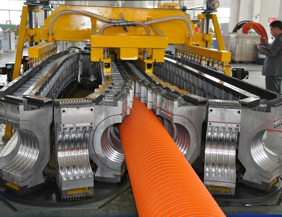 (ID90mm - 250mm) a linha ondulada da tubulação da parede SBG250 dobro adota duas extrusora de único parafuso, estrutura dobro do canal, tratamento de lustro da nitruração morre cabeça.