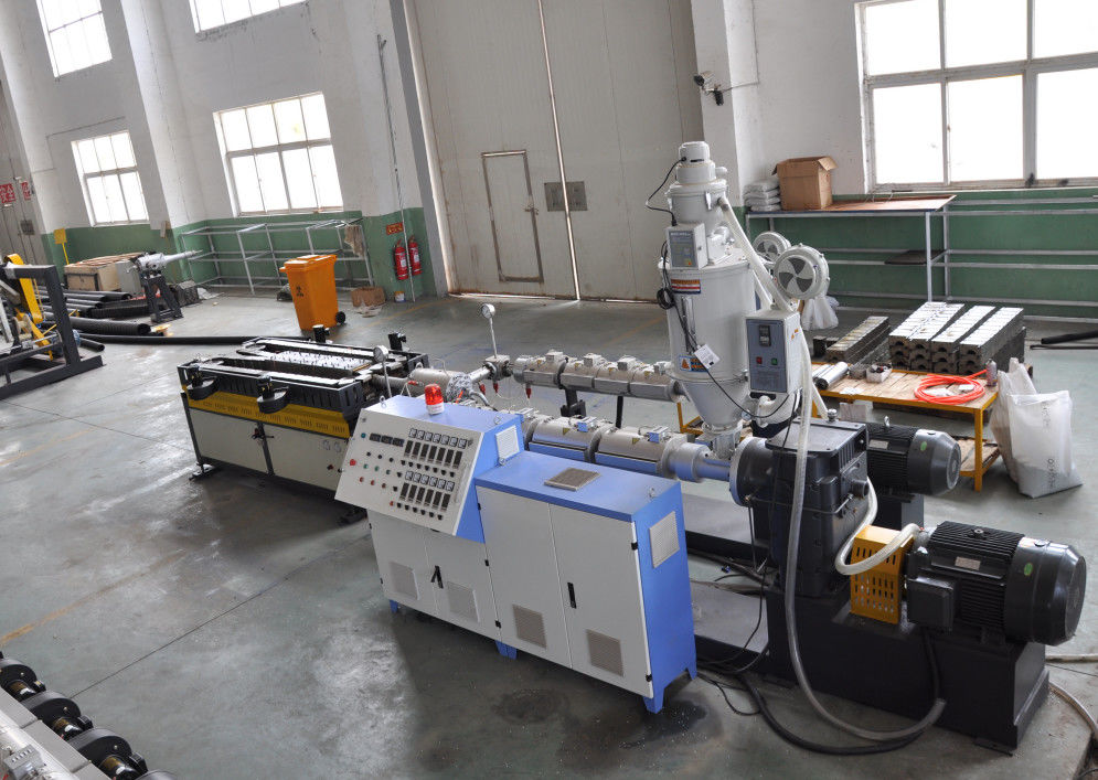 Esta linha ondulada da extrusão da tubulação da parede do signle contém principalmente a extrusora, máquina de formação ondulada, morre blocos da cabeça e do molde, equipamento refrigerando, contando a máquina e a máquina de enrolamento. Pode continuamente produzir muitos tipos do diâmetro que a única parede corrugou as tubulações.