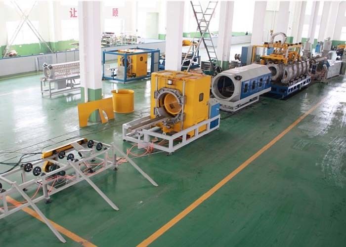 Vantagem da linha de produção ondulada de dupla parede das tubulações do HDPE com ondulador espiral: O parafuso projetado especial dos greesense de HC e o molde especial da estrutura podem proteger o parafuso e o tambor de fácil-abradion e dar um processo de formação fácil.