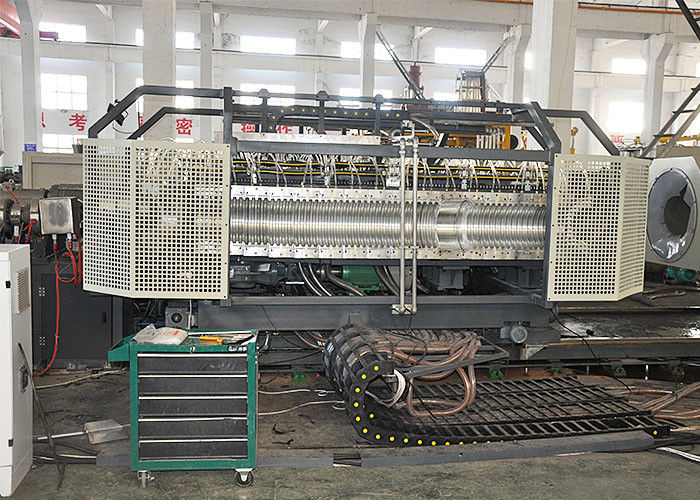 Desempenho e vantagens: esta linha de produção é o produto melhorado da terceira geração da tecnologia plástica Co. de Shandong Huasu, Ltd., e a saída da extrusão e a velocidade da produção da tubulação da máquina principal são aumentadas extremamente por 20-40% comparado com os produtos precedentes. Pode realizar em linha o alargamento e assegurar todos os índices do desempenho de produtos formados dos foles. O sistema de controlo da relação da humano-máquina de Siemens é adotado na linha inteira, que tem o desempenho estável da extrusão, o alto nível da automatização e a operação simples.