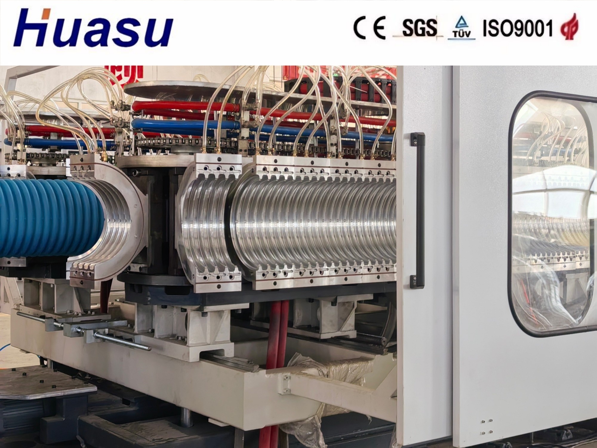 A linha de tubos corrugados de parede dupla representa a 3ª geração de produtos aprimorados da Shandong HUASU. Em comparação com o modelo anterior, a produção da extrusora e a velocidade de produção de tubos são significativamente aumentadas em 20-40%.